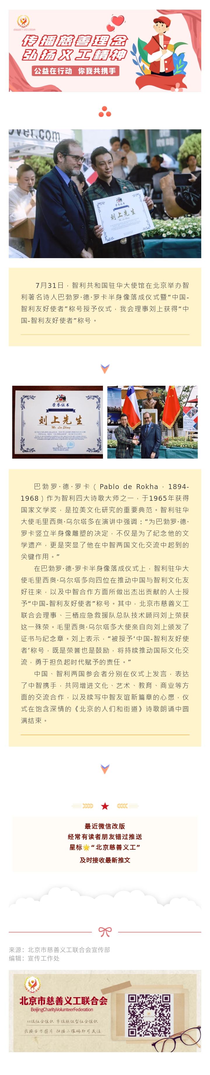 【理事动态】我会理事刘上获得“中国-智利友好使者”称号