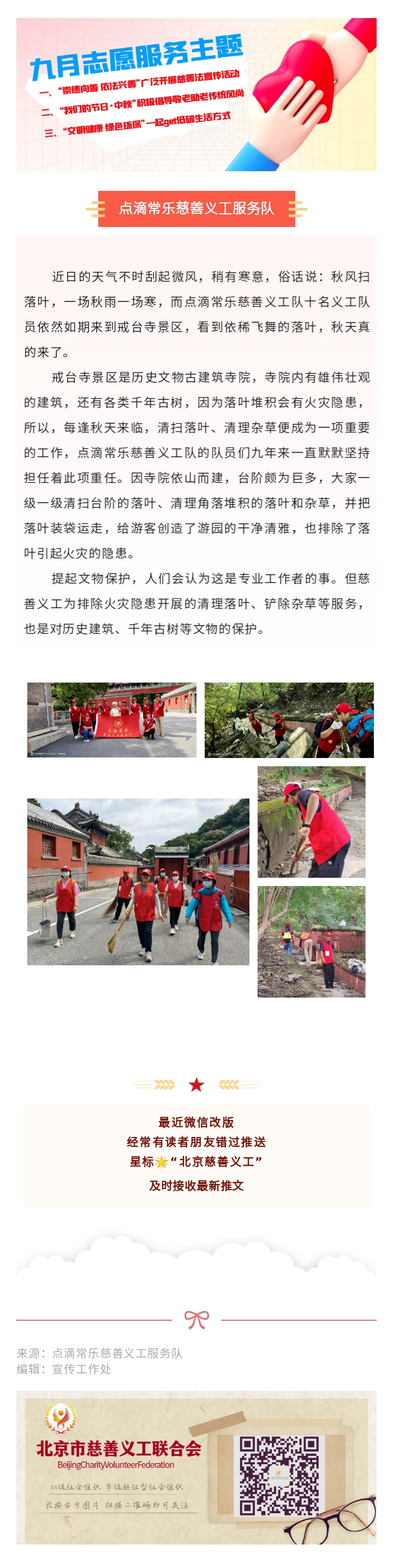 点滴常乐慈善义工服务队在戒台寺景区开展志愿服务