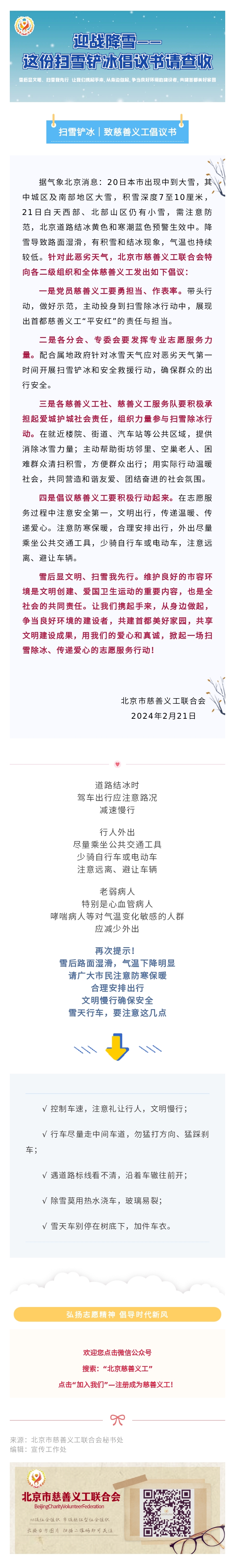 迎战降雪!这份扫雪铲冰倡议书请查收