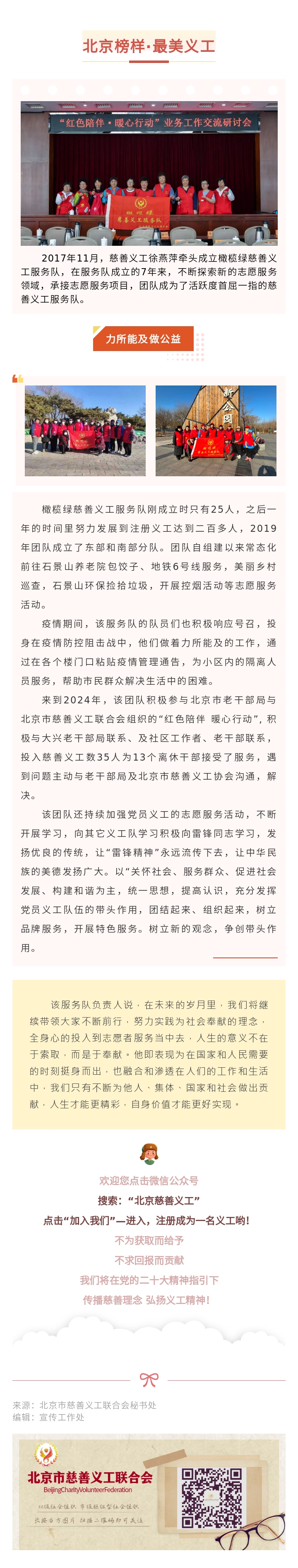 【北京榜样·最美义工】最美团队:橄榄绿慈善义工服务队