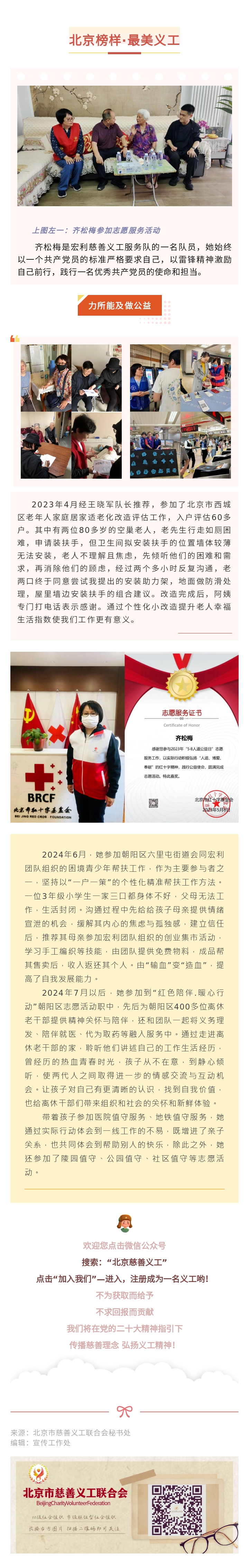 【北京榜样·最美义工】宏利慈善义工服务队:齐松梅
