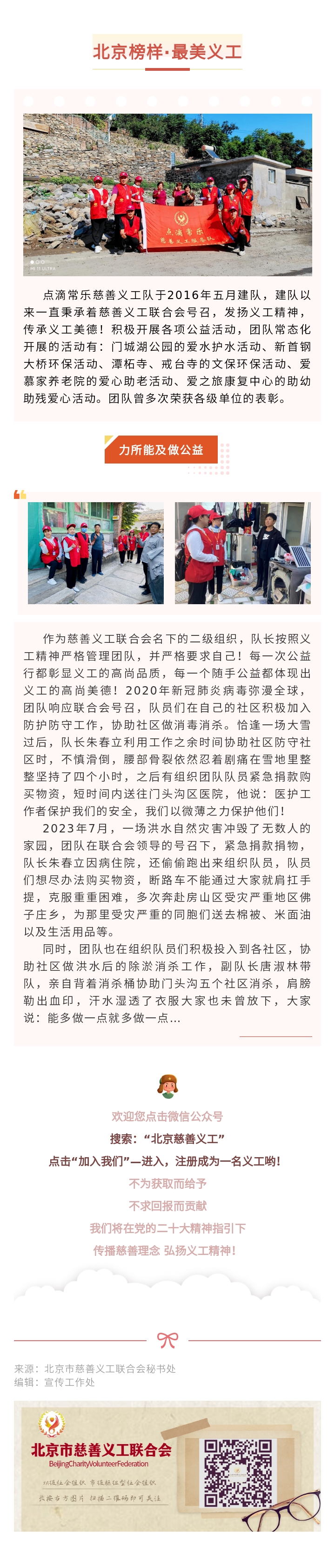 【北京榜样·最美义工】最美团队:点滴常乐慈善义工服务队