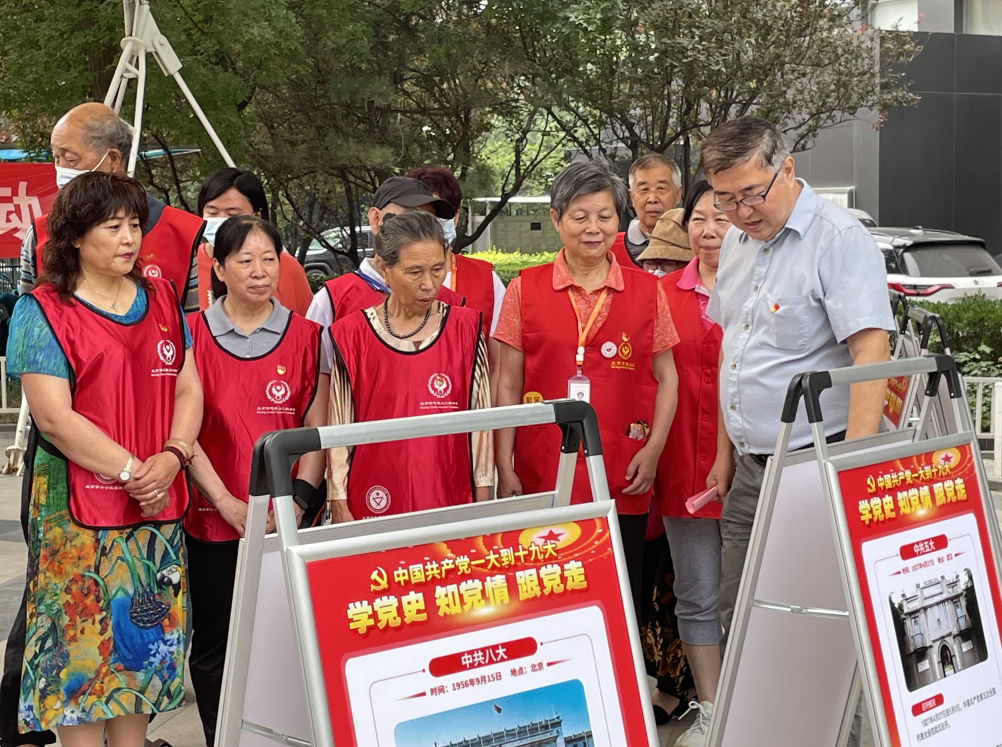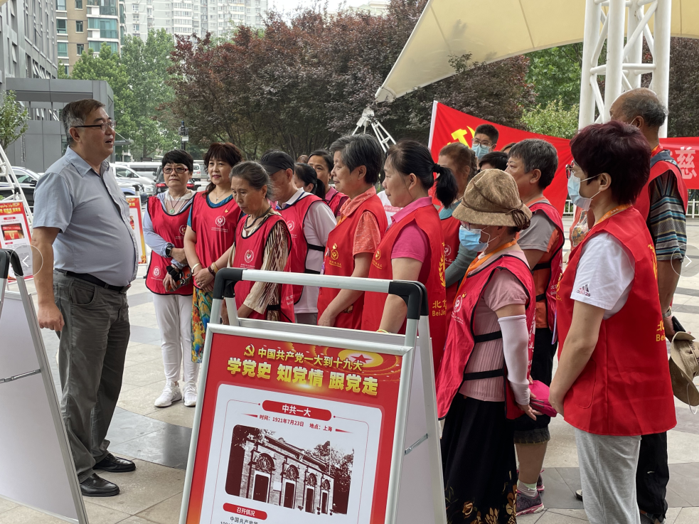 在楼宇小广场,鲜红的党旗置于其中。党旗前,全体党员整齐肃立,在党建委主任的领誓下,党员们高举右手,再次庄严宣誓。“我志愿加入中国共产党……随时准备为党和人民牺牲一切,永不叛党。”铿锵恢宏的誓词在小区广场回荡,强烈震撼着在场的每一位党员,一字一句,神圣而豪迈,体现了党员同志们对党的无限忠诚,对各自肩负事业的无限热爱。随后,王骏副会长通过中共一大至十九大一系列党史故事和事例,给我们上了一堂生动的党课。带领我们回顾了中国共产党百年奋斗的光辉历史和丰功伟绩,让党员和党员义工们深刻认识了中国共产党能让中国从站起来、富起来到强起来的历史必然,也深刻阐述了中国共产党人的初心和使命。全体党员们认真聆听着王会长的讲解。