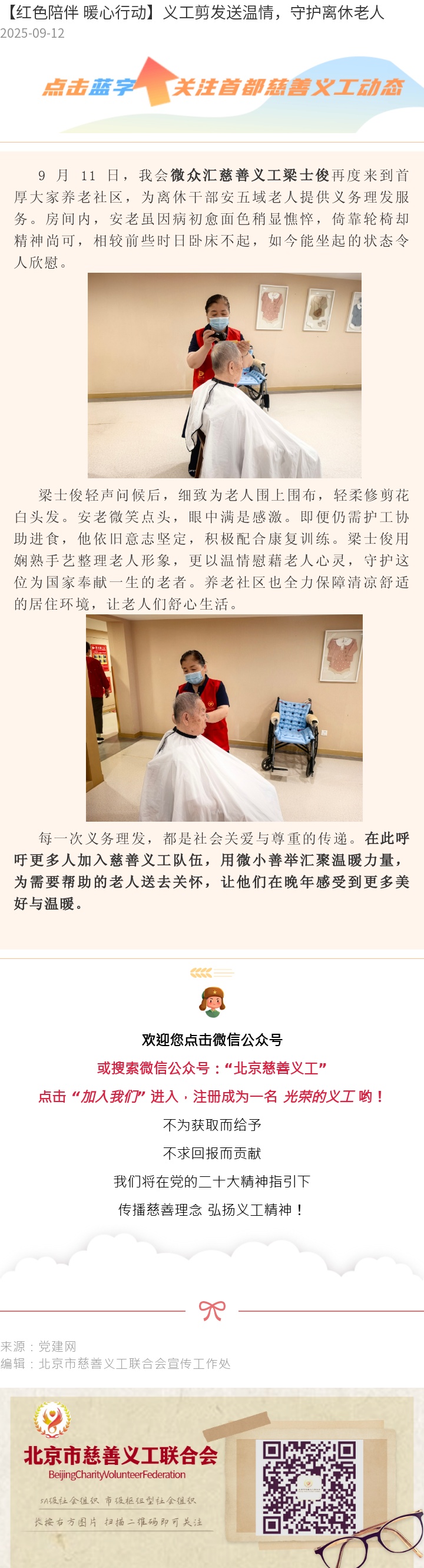 【红色陪伴 暖心行动】义工温情剪发,守护离休老人