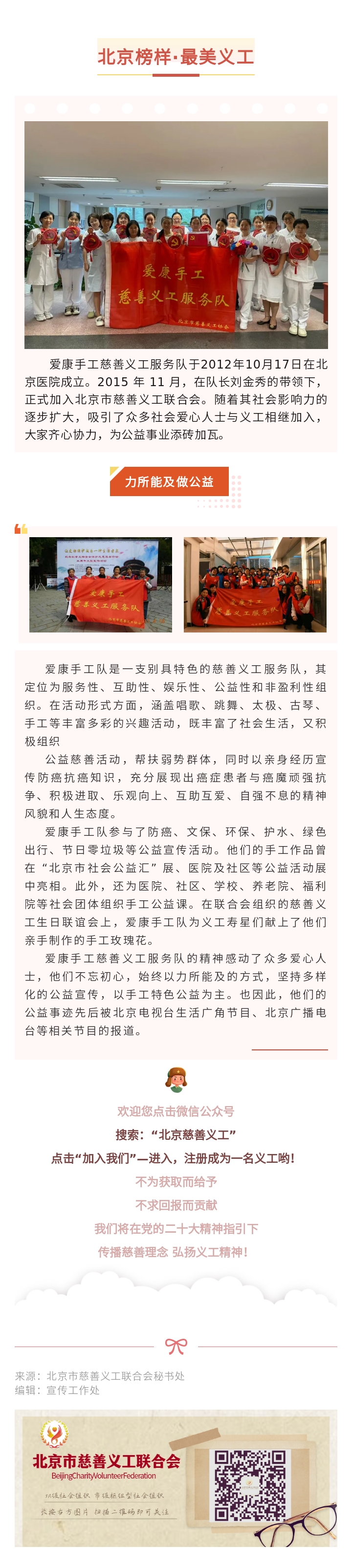 【北京榜样·最美义工】最美团队:爱康手工慈善义工服务队