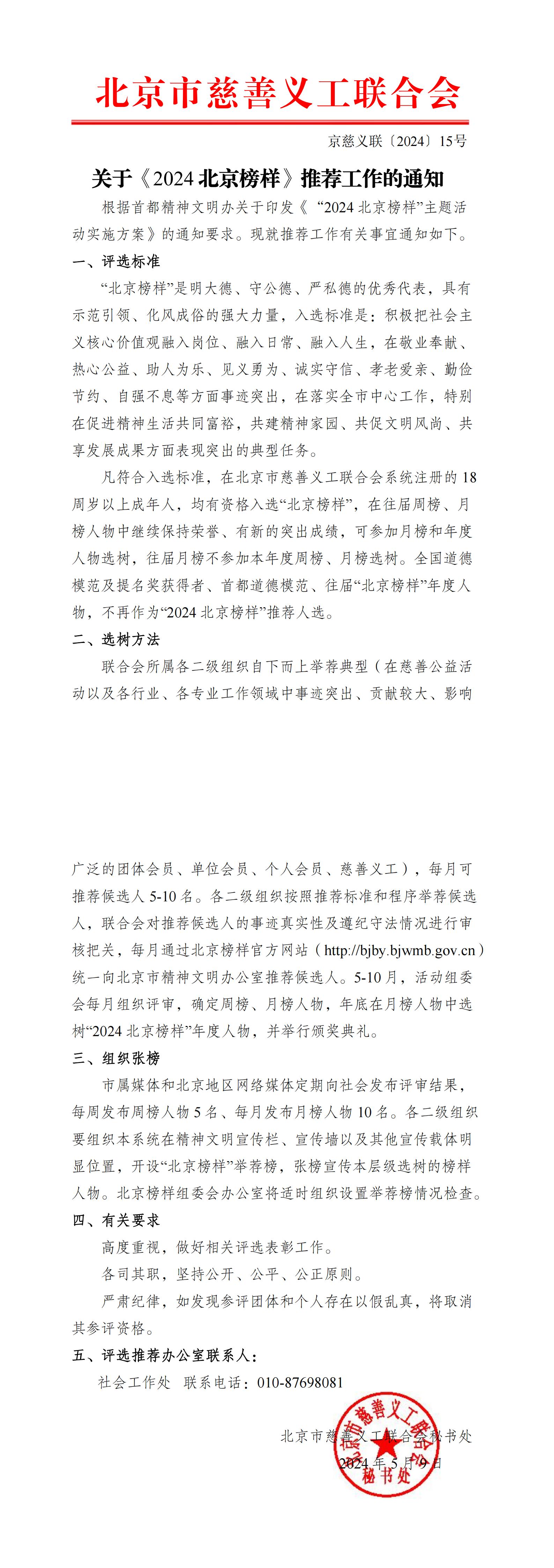 关于《2024北京榜样》推荐工作的通知