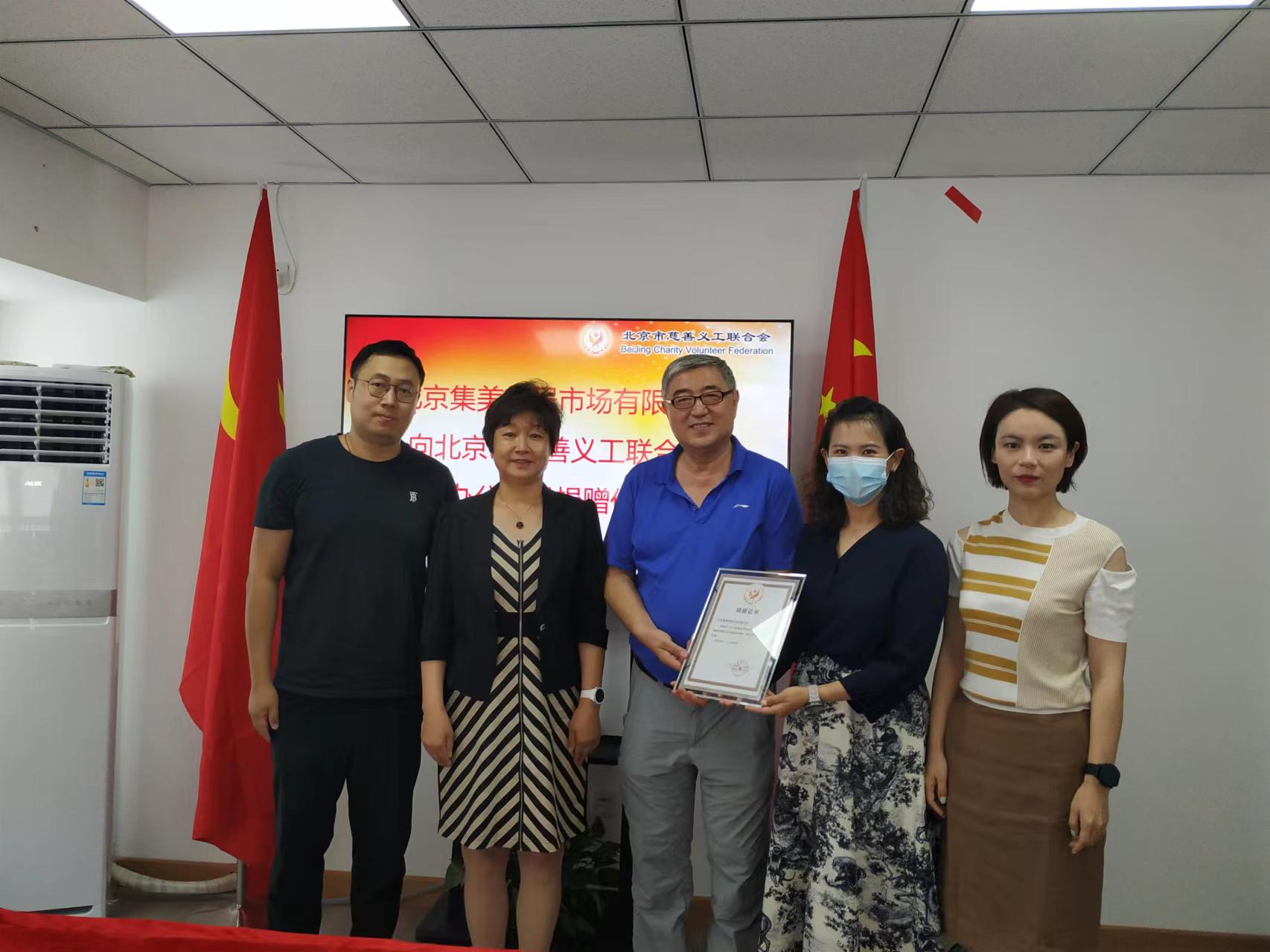在谈到如何让志愿服务与百姓更加贴近,如何为那些扎扎实实从事公益服务的慈善义工建立激励机制时,双方都提出了各自的意见和建议。王百玲副会长在对集美家居市场有限公司的公益热情和无私捐助表示感谢后,副会长王骏将捐赠证书颁发给集美控股集团有限公司副总裁赵婷婷。随同赵婧一起参加颁奖仪式的还有集美控股集团有限公司网络建设部总监朱政。