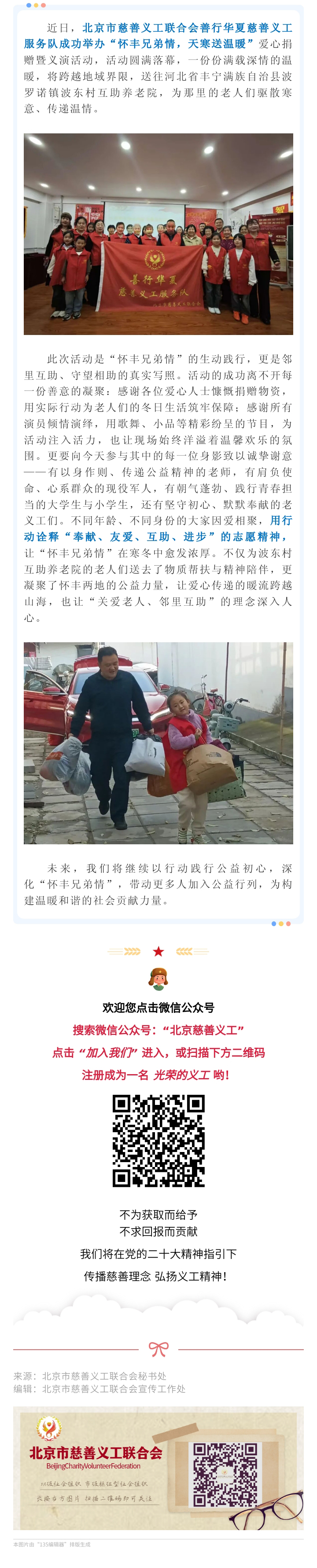 【志愿活动】“怀丰兄弟情,天寒送温暖”